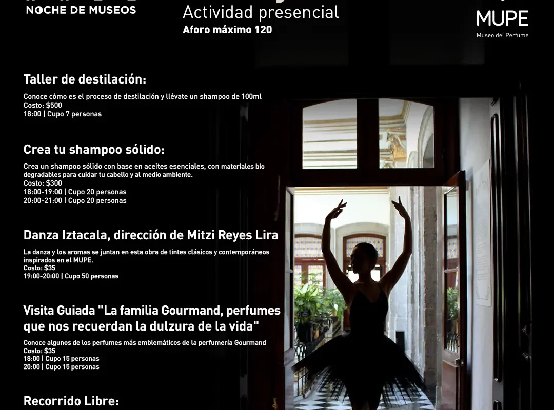 El Museo del Perfume (MUPE) se suma a la Noche de Museos este miércoles 30 de julio de 2025 con actividades presenciales para disfrutar de una noche sensorial única.